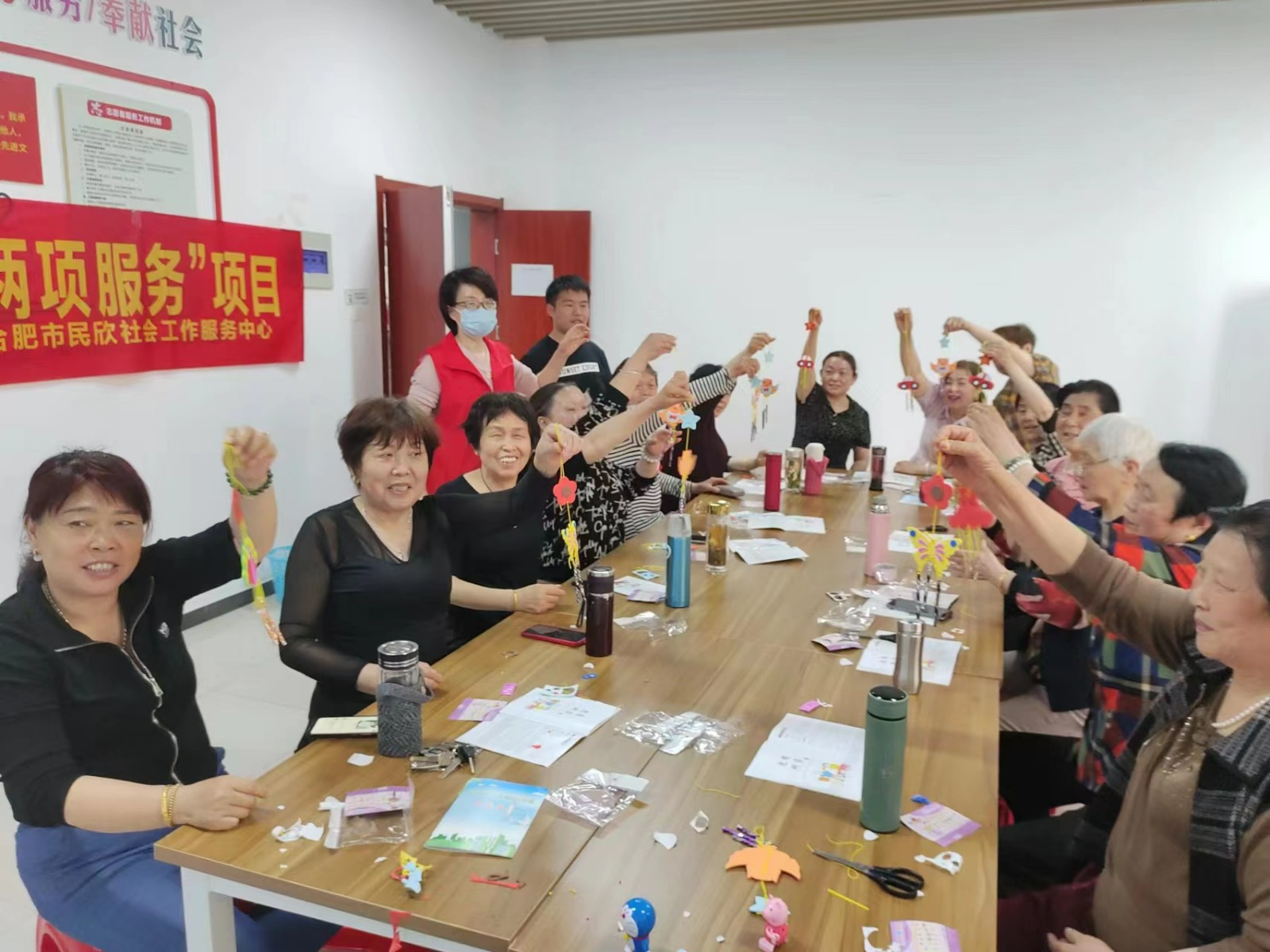 伴随着轻松欢快的音乐民欣社工把制作风铃的材料包发放到每位老年人手中,志愿者向老人们介绍了本次手工风铃制作的步骤和要领,协助老人一起完成风铃的制作。在场的老人跃跃欲试,拿起材料尝试制作风铃,一个个原材料在老人的手指间穿梭,一阵阵欢声笑语伴随着整个制作过程。不一会儿,各式各样美丽的风铃呈现在眼前,一阵风吹过,掀起阵阵清脆的铃声。这些风铃不仅是劳动的结晶,也承载着老人的祝福与期盼。