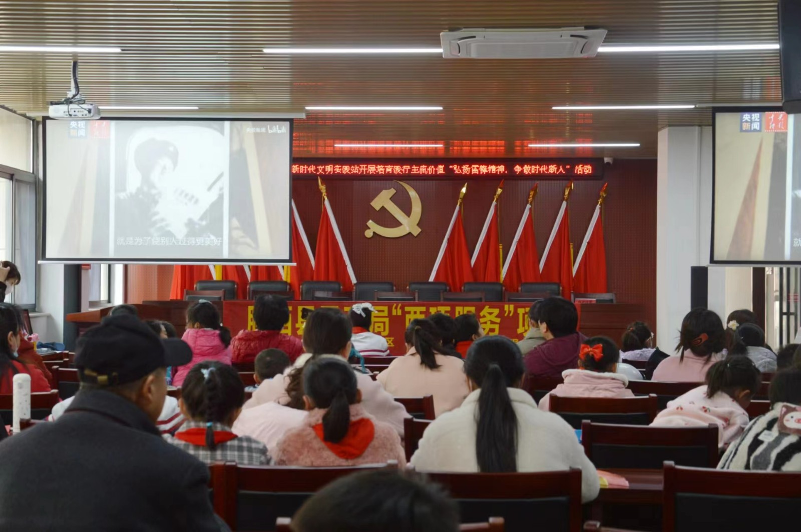 在社区新时代文明实践站,青少年们整齐坐着,全神贯注观看《雷锋》纪录片,了解了雷锋的生平,知道了雷锋的事迹,学习了雷锋的名言,体会了雷锋精神的内涵,在心中播下了助人为乐的种子。大半个世纪过去,雷锋没有随着一个时代远去而远离,如今这个名字仍然如同灿烂朝阳,照耀每一位青少年的心灵。观影结束后,小朋友们自发佩戴红领巾唱起了《学习雷锋好榜样》,嘹亮的歌声萦绕整个社区。